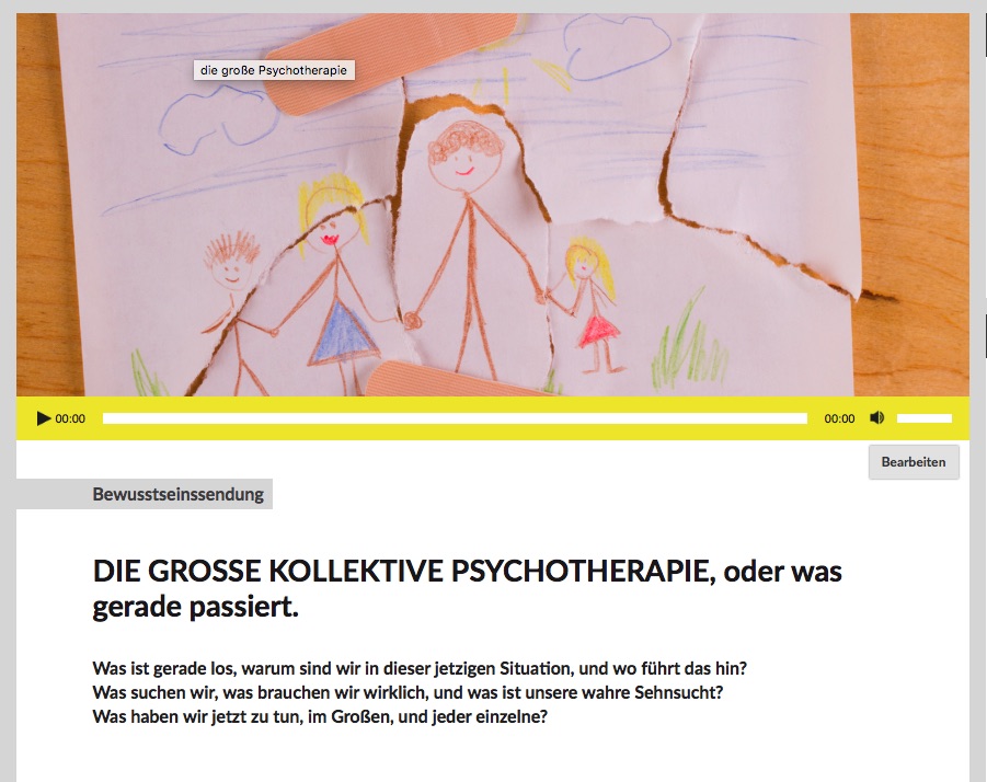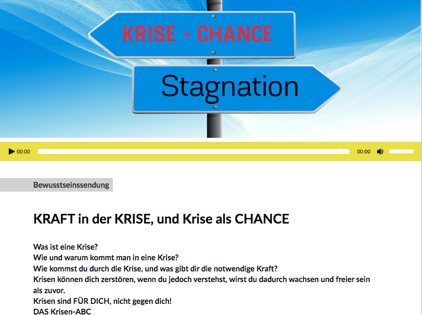 Jeden ersten Donnerstag im Monat von 11:00 bis 12:00 gibt es die BEWUSSTSEINSSENDUNG bei Radio FRO (freies Radio Oberösterreich) in Linz, LIVE IM ECHTEN RADIO, und weltweit im www.